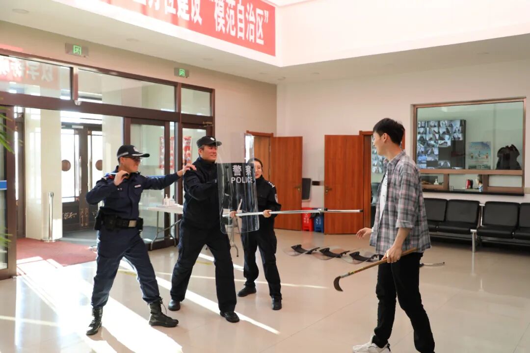 本次培训从实战出发,针对不同突发事件妥善处置的方法和技巧,进行防爆处突队形、最小作战单元等内容的演练,并对盾牌、防爆叉、警棍等警械具操作使用进行了演示训练。