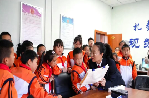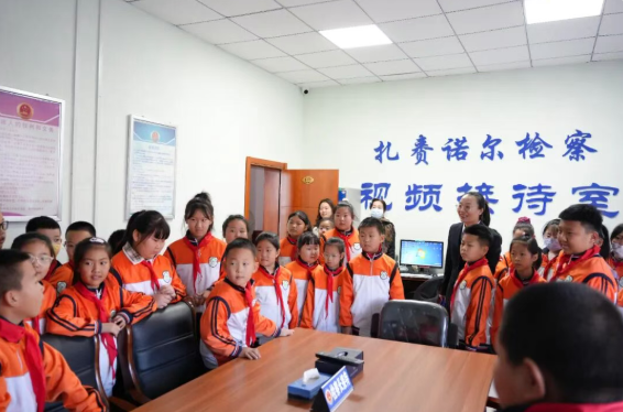带着满心的好奇与一连串的问号,近日榕欣小学的40余名同学走进扎赉诺尔区检察院,参加了我们精心准备的“法伴童行”主题检察开放日研学活动。今天,他们不再是普通的小学生,而是化身“小小法治观察员”,零距离探寻检察工作的奥秘。为确保此次研学活动取得实效,我院高度重视,活动前对参观路线、讲解内容进行了精心设计与打磨,力求贴合小学生的认知特点和兴趣点,将庄重严肃的检察场所转化为生动有趣的法治课堂,为同学们营造了一个安全、有序、富有吸引力的沉浸式学习环境。