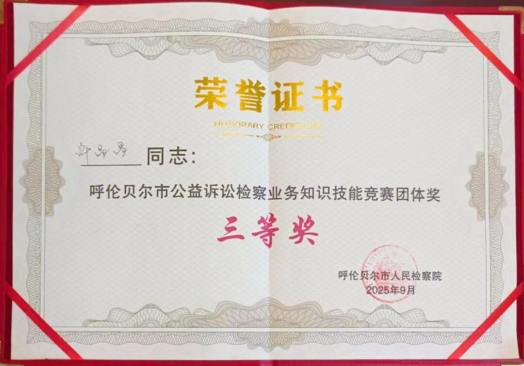 这份荣誉,既是对个人专业能力的充分认可,更是扎赉诺尔区检察院持续深化检察队伍专业化建设的生动体现。下一步,扎赉诺尔区检察院将以此次竞赛为契机,持续加强业务能力建设,发扬精益求精的钻研精神和团结协作的团队精神,不断提升公益诉讼检察工作服务民生、守护公共利益的实效。