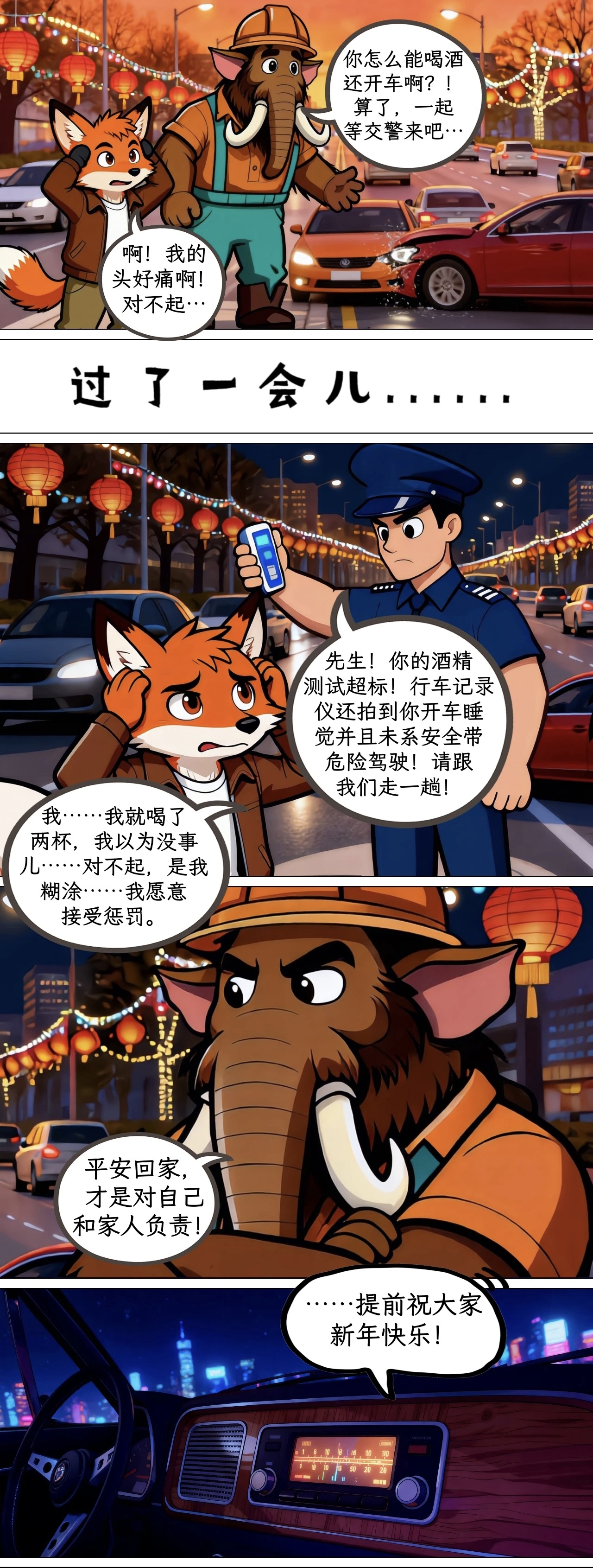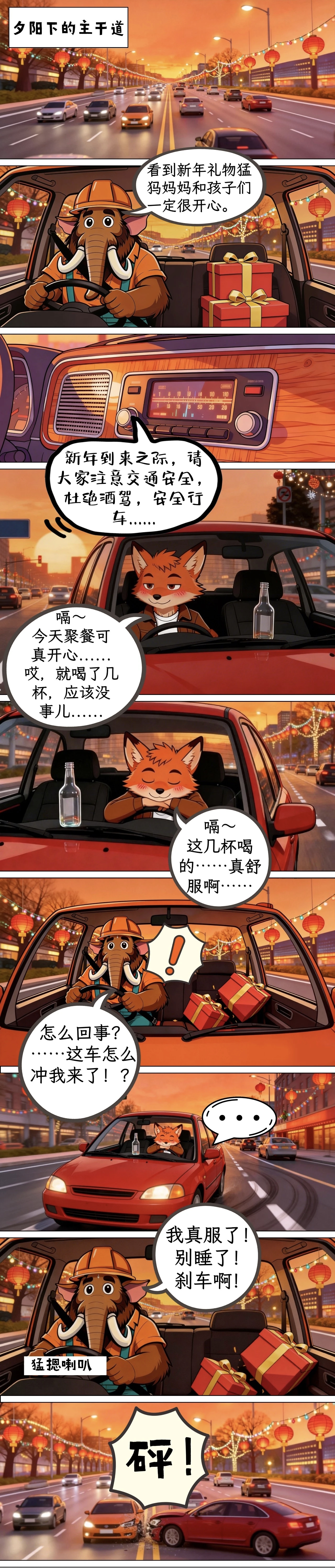 猛犸一家系列漫画——《年关酒,勿开车》
