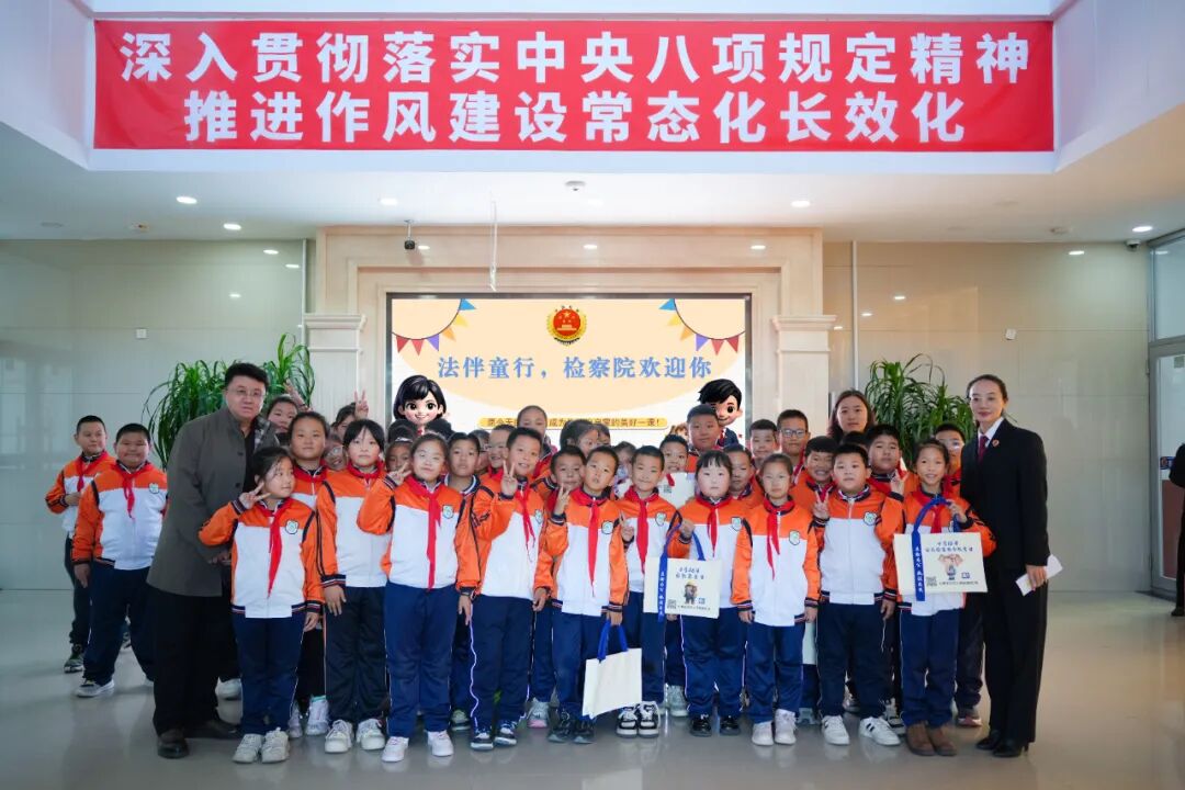 带着满心的好奇与一连串的问号,近日榕欣小学的40余名同学走进扎赉诺尔区检察院,参加了我们精心准备的“法伴童行”主题检察开放日研学活动。今天,他们不再是普通的小学生,而是化身“小小法治观察员”,零距离探寻检察工作的奥秘。为确保此次研学活动取得实效,我院高度重视,活动前对参观路线、讲解内容进行了精心设计与打磨,力求贴合小学生的认知特点和兴趣点,将庄重严肃的检察场所转化为生动有趣的法治课堂,为同学们营造了一个安全、有序、富有吸引力的沉浸式学习环境。