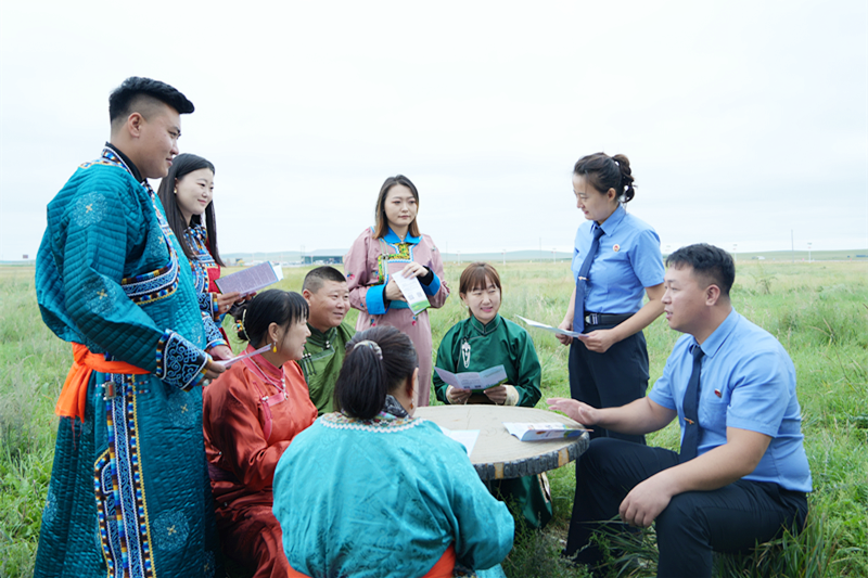 “千里北国草、骑迹边疆行。”2023年7月,内蒙古自治区第一支“乌兰牧骑公益诉讼宣传队”在苏尼特右旗正式成立。这支由检察人员和乌兰牧骑队员组成的队伍,将检察公益诉讼内容巧妙编进歌曲中,让法治好声音传遍草原每一个角落。