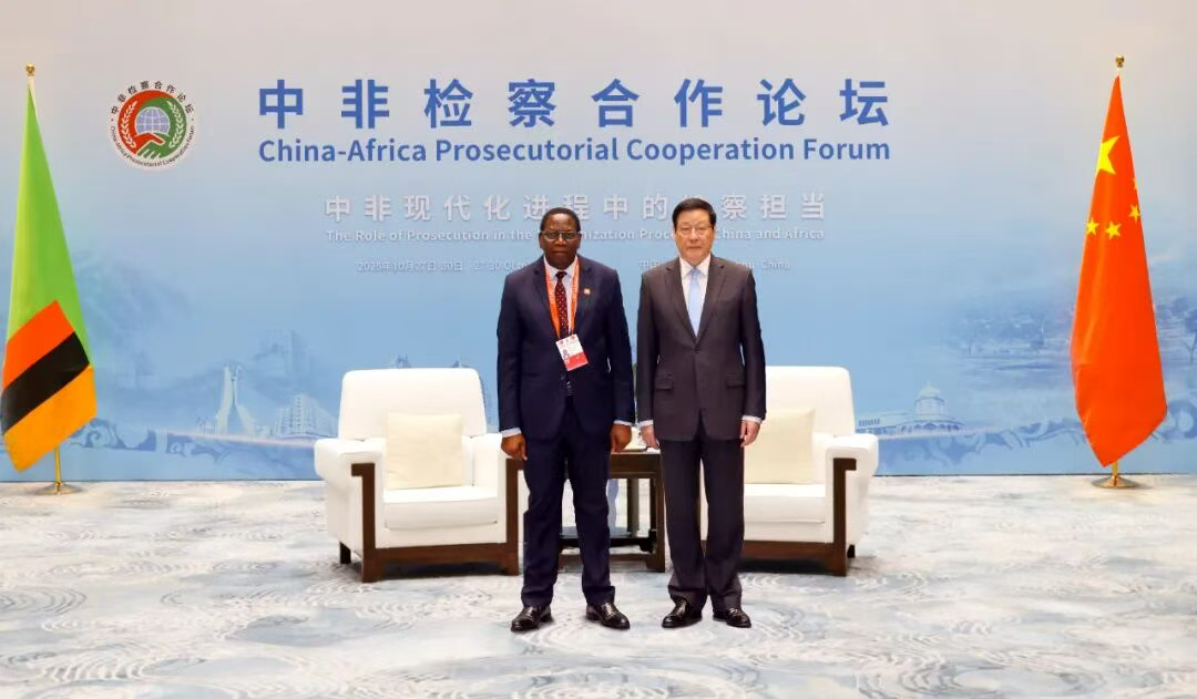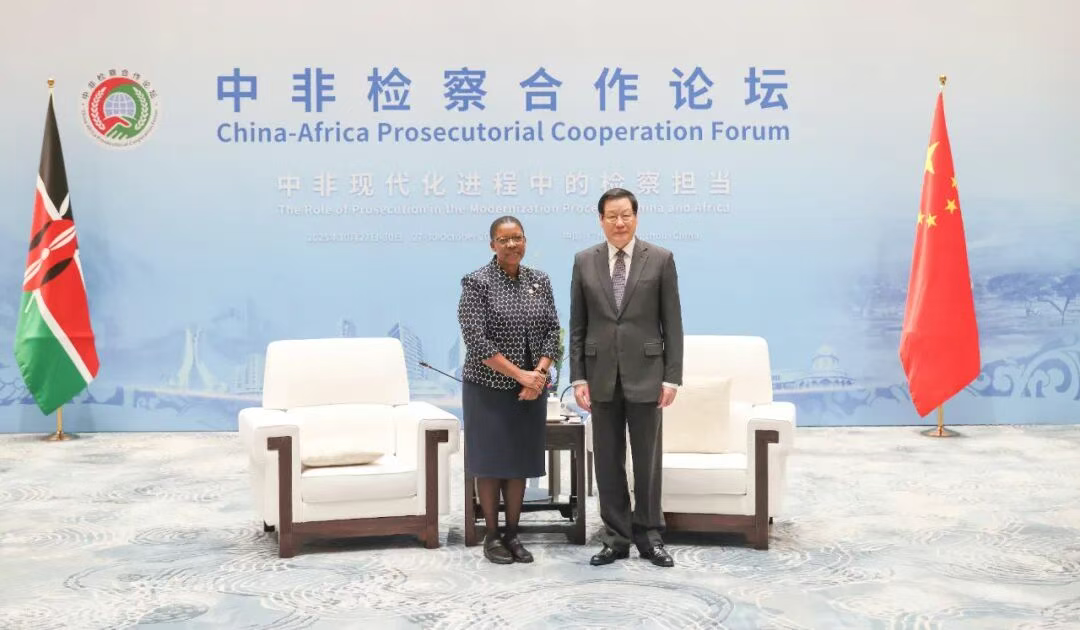 应勇介绍了中国法治建设、检察工作有关情况。他说,全面依法治国是中国的宪法原则和中国共产党治国理政的基本方略。中国检察机关作为国家的法律监督机关和保障国家法律统一正确实施的司法机关,正在中国共产党领导下,认真落实中共二十大和二十届历次全会精神,依法履行法律监督职责,持续推进习近平法治思想的检察实践,努力以检察工作高质量发展支撑和服务中国式现代化。中国检察机关愿与非洲国家检察机关一道,共同落实好中非国家领导人重要共识,深化交流互鉴,在打击跨国犯罪、腐败犯罪、有组织犯罪,刑事司法协助,遣返引渡罪犯,保护投资者合法权益,检察人员交流培训,检察信息化建设等方面加强合作,共同维护各自国家主权、安全、发展利益,更好造福中非各国人民。